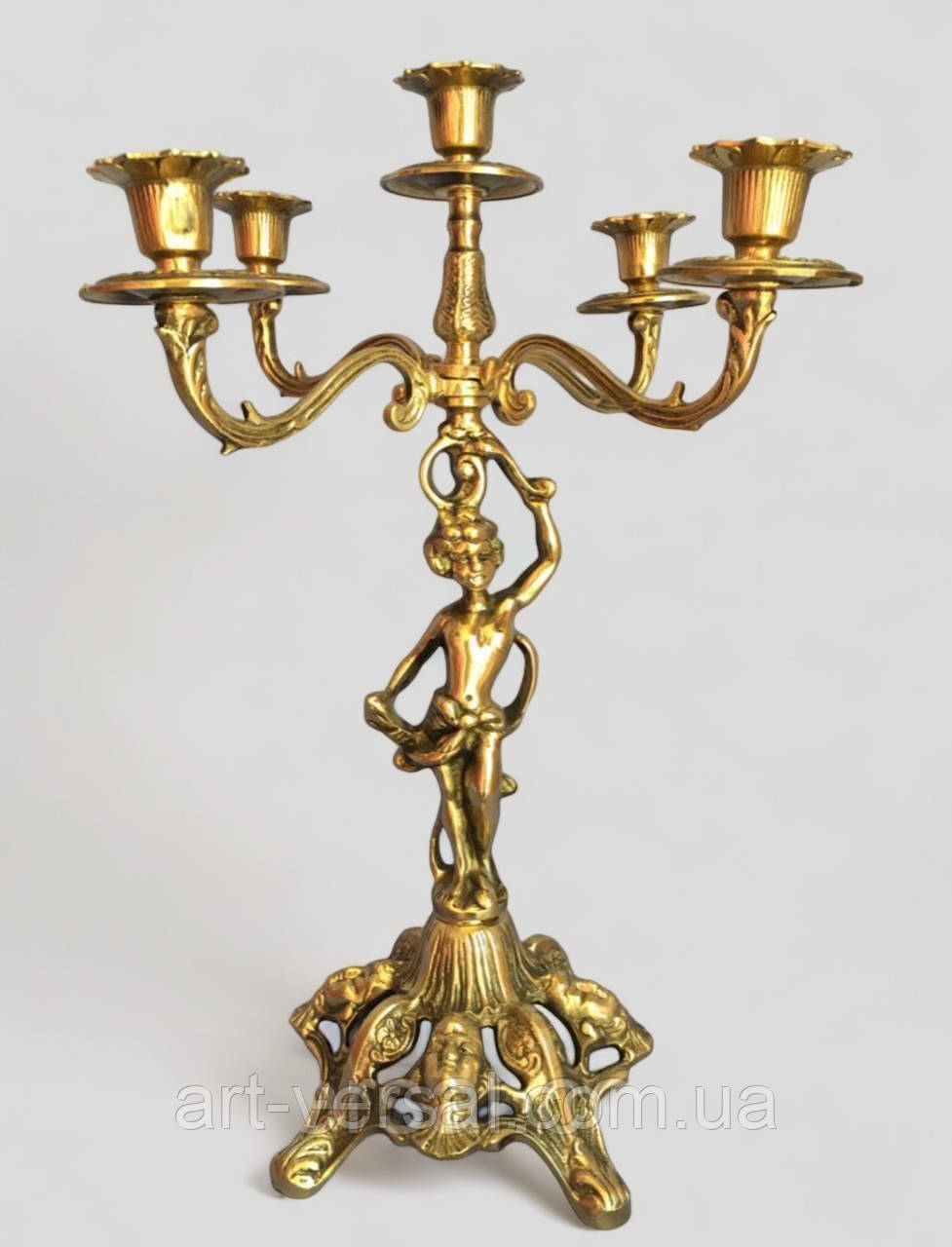 Підсвічник бронзовий "Амур" камінний канделябр 41см